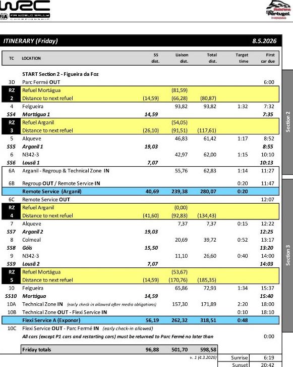 A quinta etapa do Campeonato do Mundo de Ralis aterra nas regiões Norte e Centro de Portugal entre 7 e 10 de maio. A base operacional da prova mantem-se na Exponor, em Matosinhos, onde se concentram a direção de prova, as marcas e os pilotos.