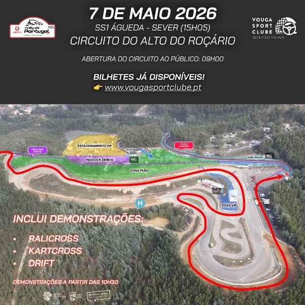 O Circuito do Alto do Roçário integra este ano a parte final da primeira Classificativa Especial do Rally de Portugal 2026 (SS1 - Águeda-Sever), apresentando mais uma vez um traçado competitivo cheio de emoção que permitirá ao público assistir de forma muito próxima e segura ao espetáculo dos melhores pilotos do mundo de rally!